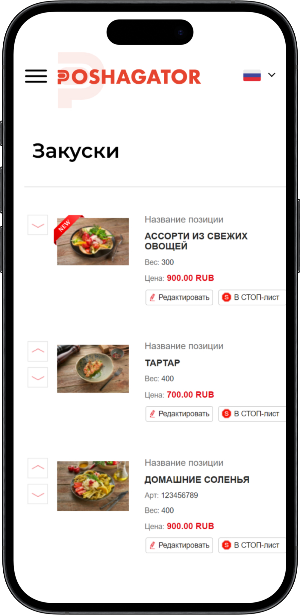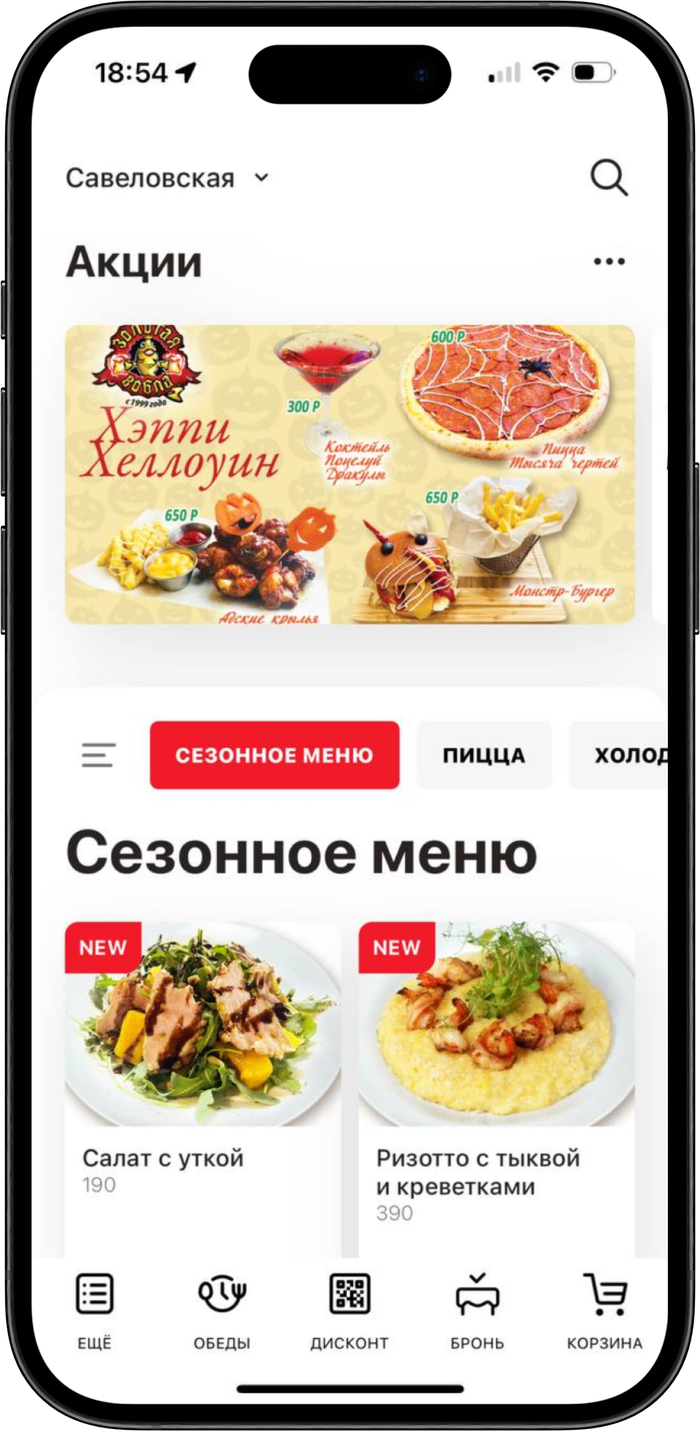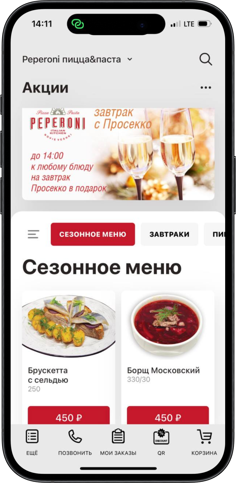 Меню + синхронизация с ERP-системами IIKO / R-keeper + подключение онлайн-оплаты + нативные мобильные приложения для маркетов AppStore и Google Play + типовой сайт
