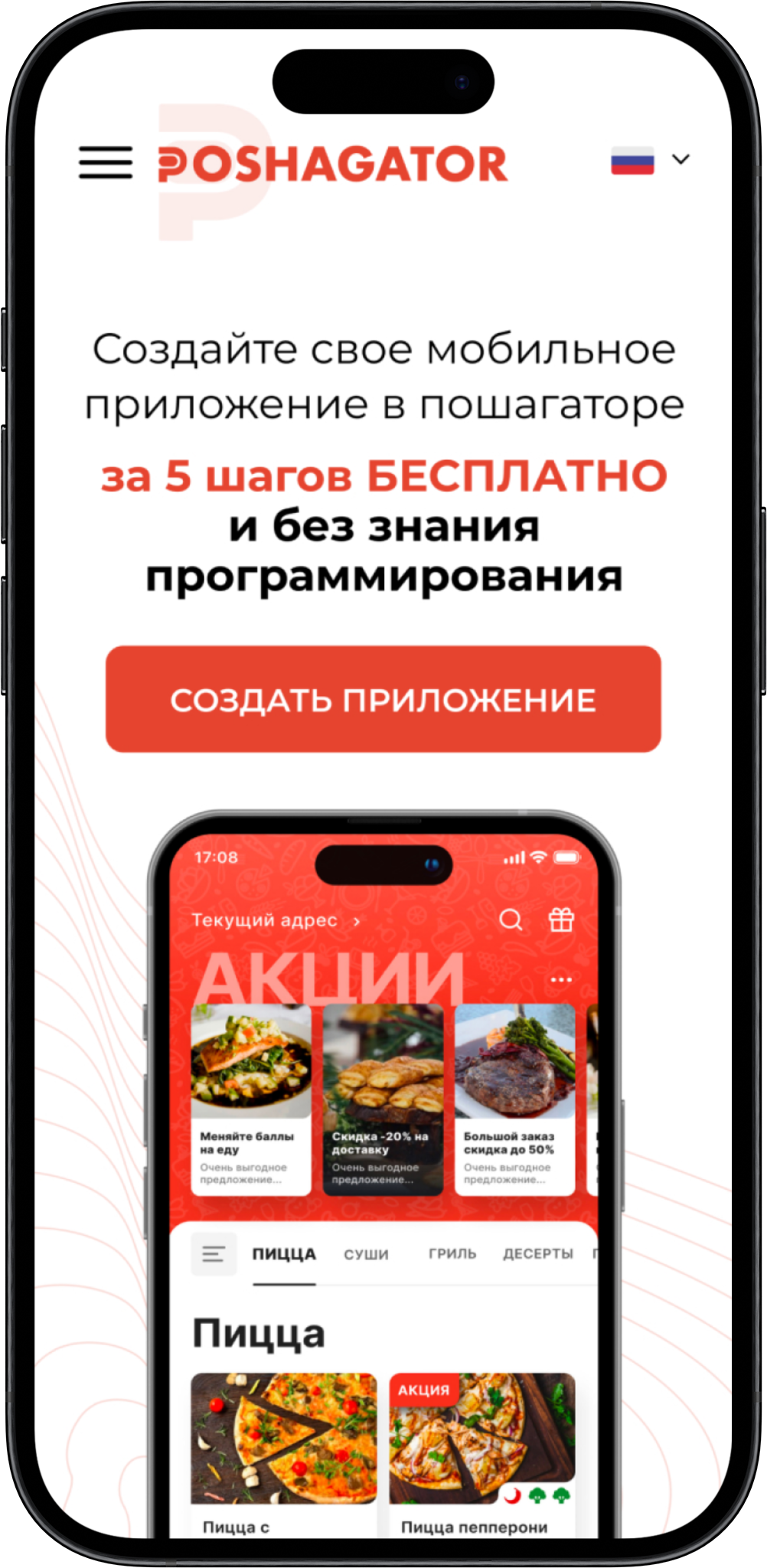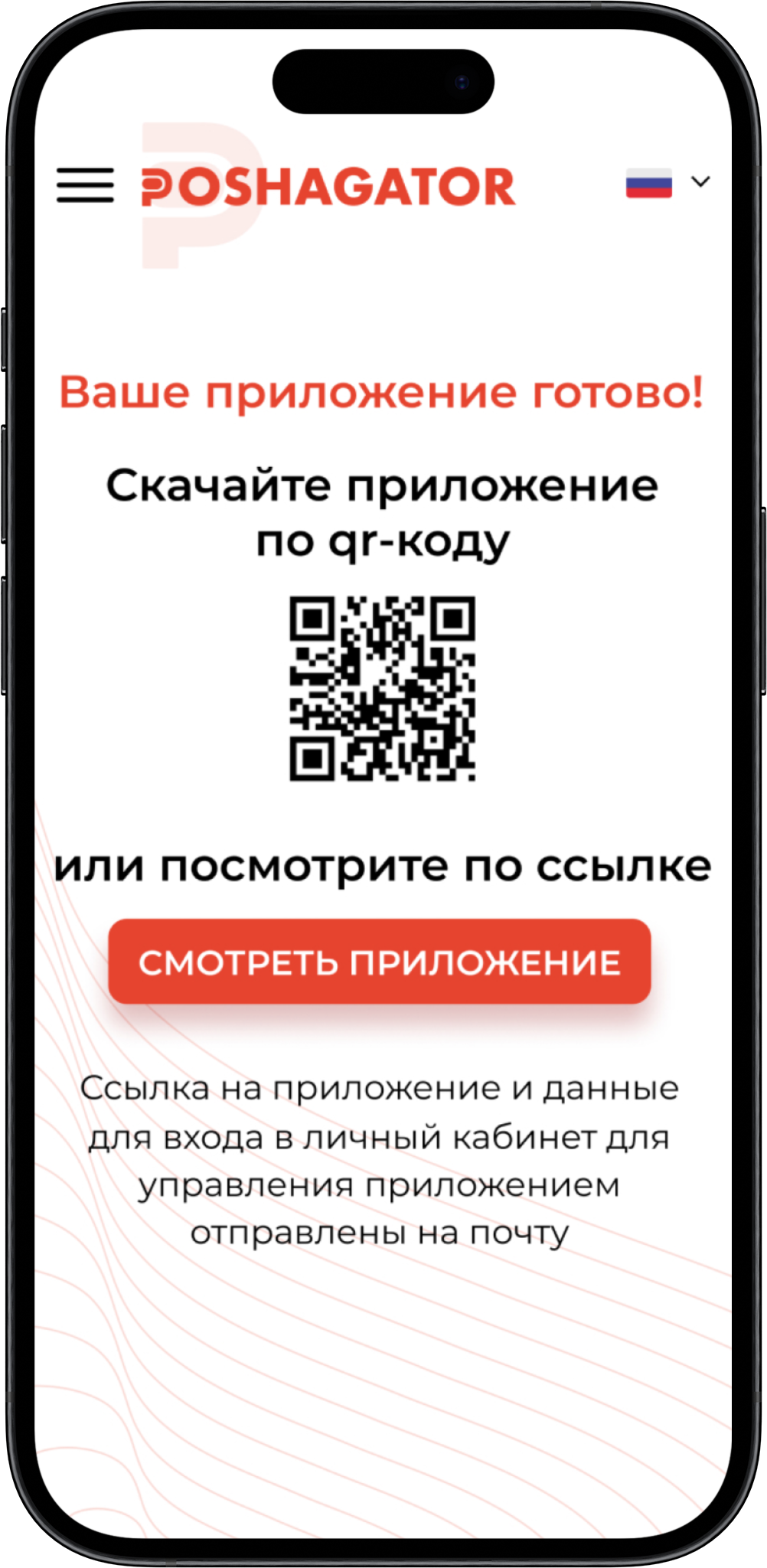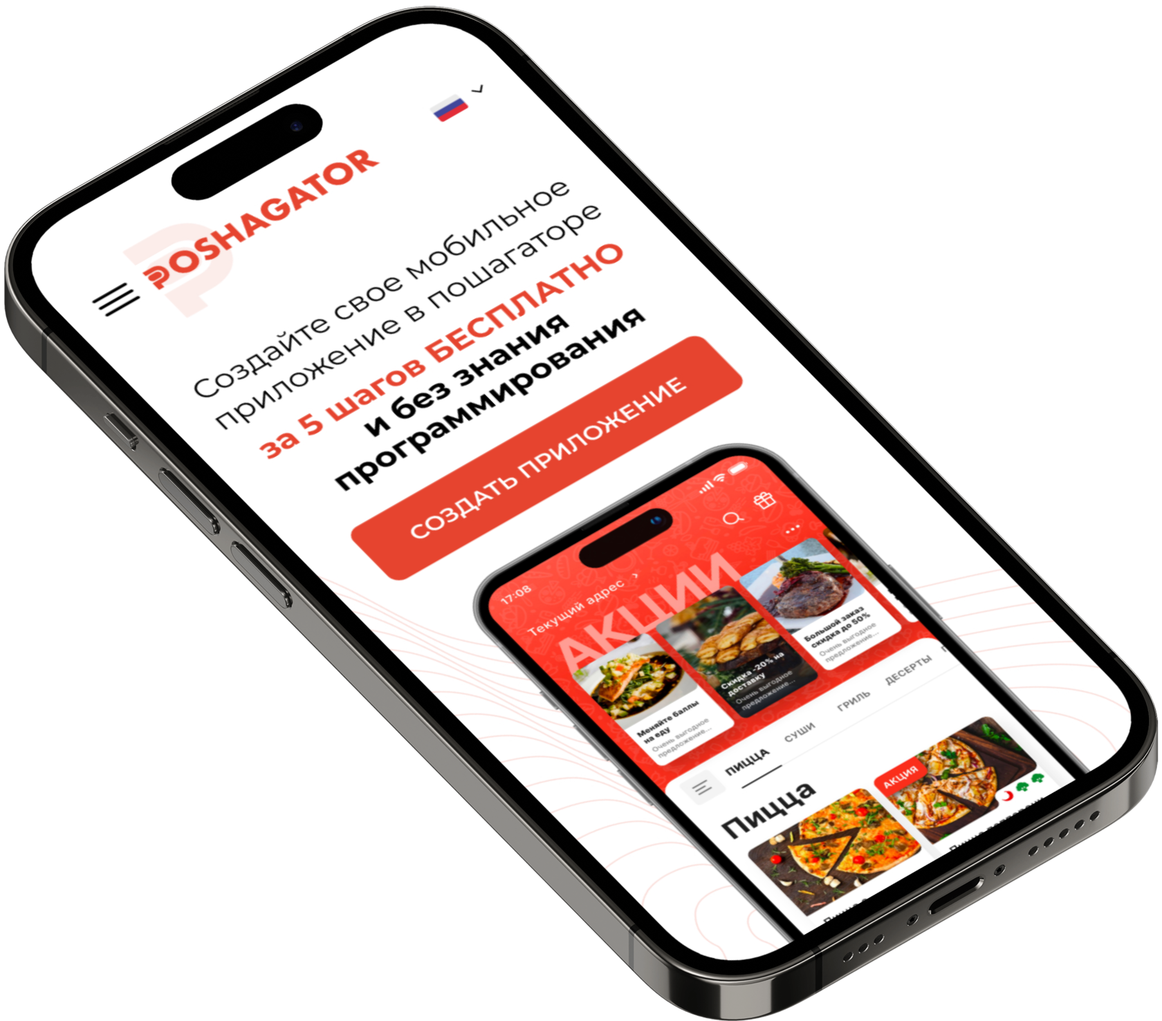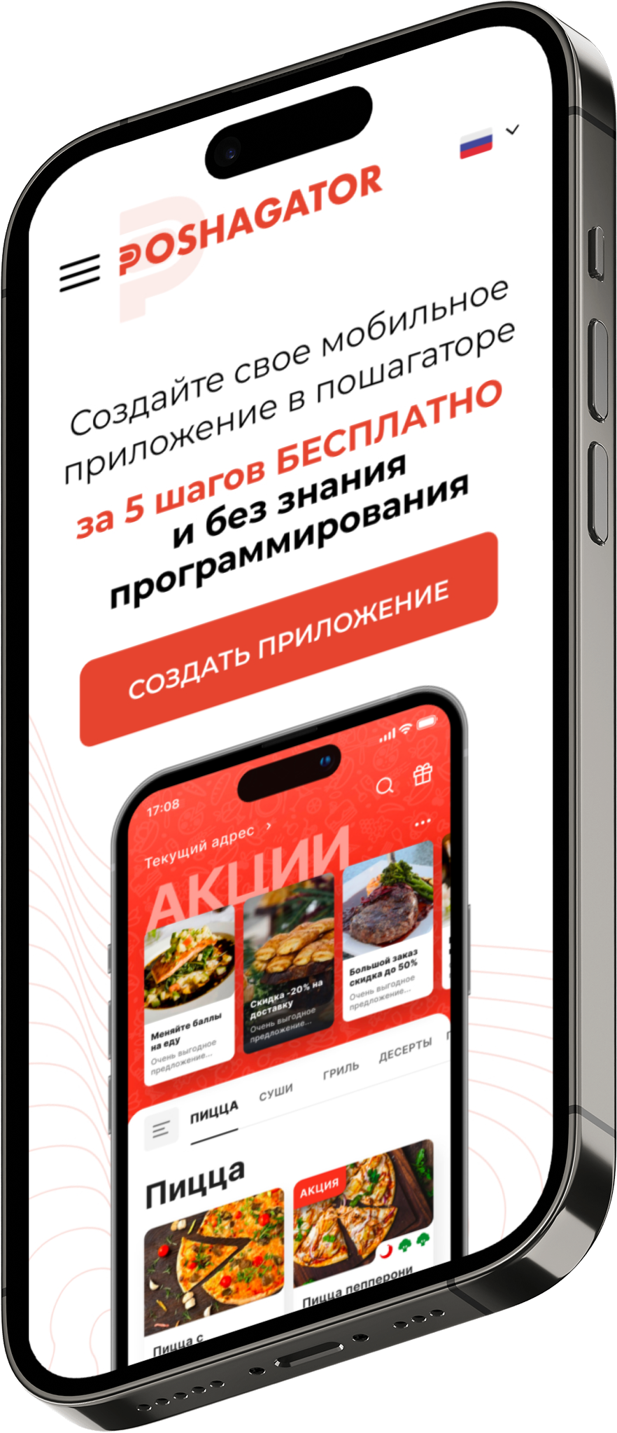 ПОШАГАТОР – это конструктор (инструмент) в котором Вы: владелец, управляющий или маркетолог, со 100% результатом и за 5 минут соберете свое красивое мобильное приложение!