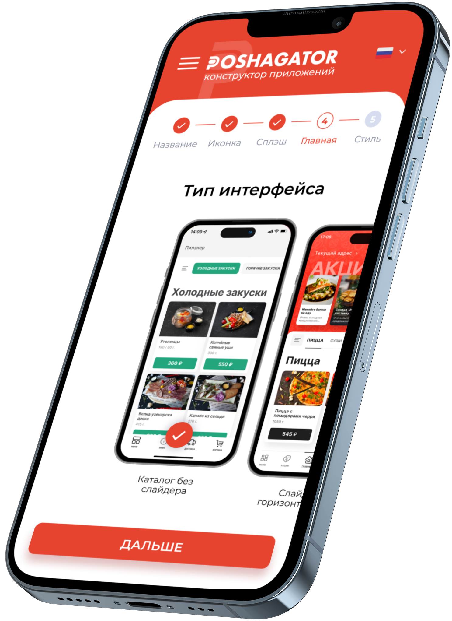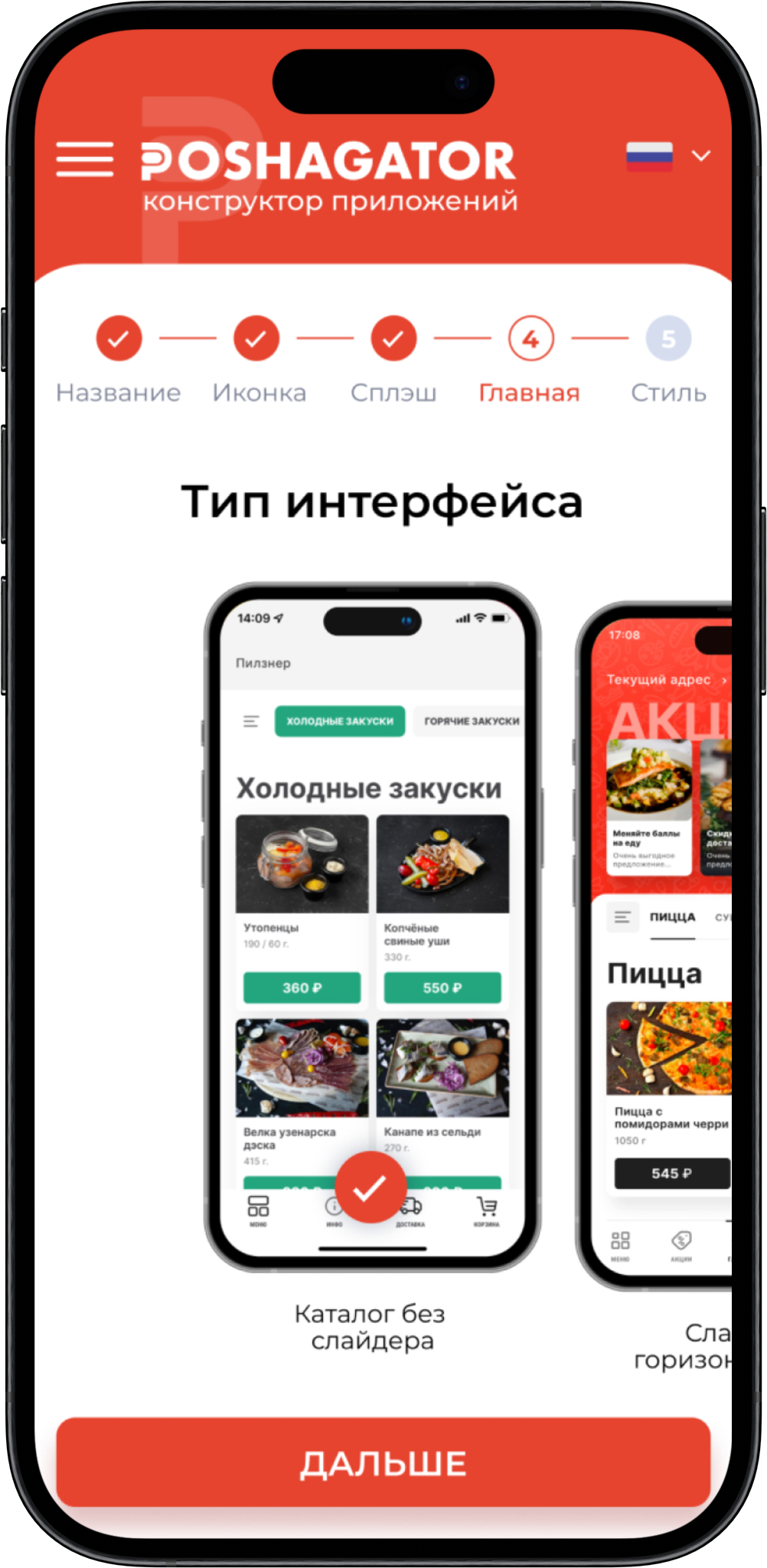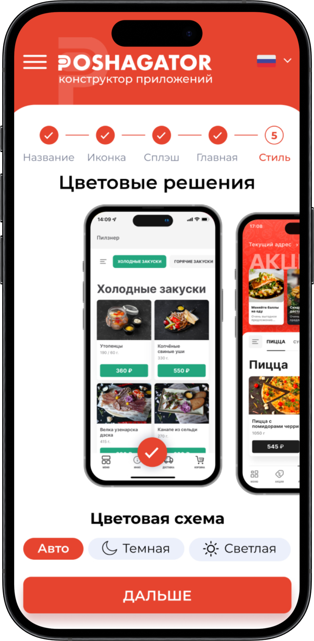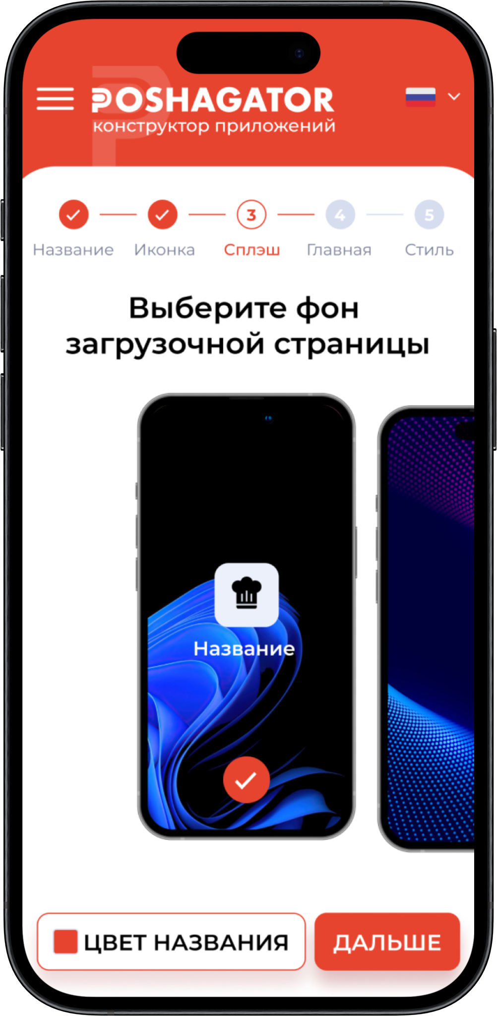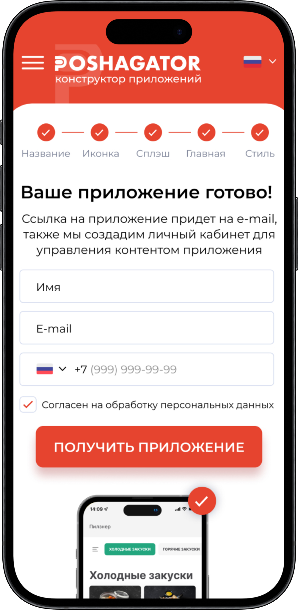 ПОШАГАТОР – это конструктор (инструмент) в котором Вы: владелец, управляющий или маркетолог, со 100% результатом и за 5 минут соберете свое красивое мобильное приложение!