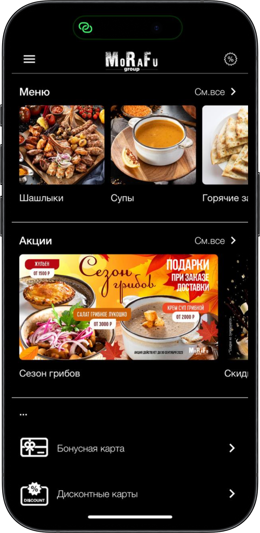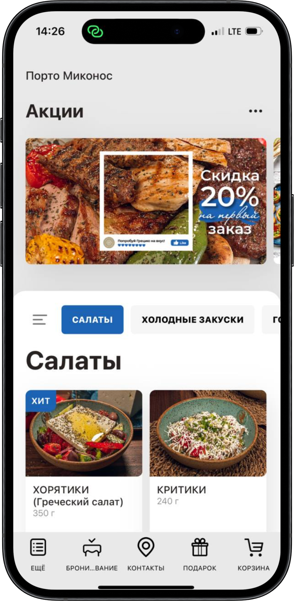 Ресторан Греческой кухни (Москва) Задача заказчиком была озвучена в хорошо настроенной программе лояльности, совмещенной с ЕРПи IIKO. В момент, когда заказчик хотел создать свое мобильное приложение, у них уже существовали пластиковые карты, и они хотели, чтобы виртуальная карта в мобильном приложении стала продолжением существующих скидок по «пластику». Сложности были с разными периодами и формами «треков» на пластике, но и эту задачу мы решили достаточно быстро! Заказчик остался доволен.